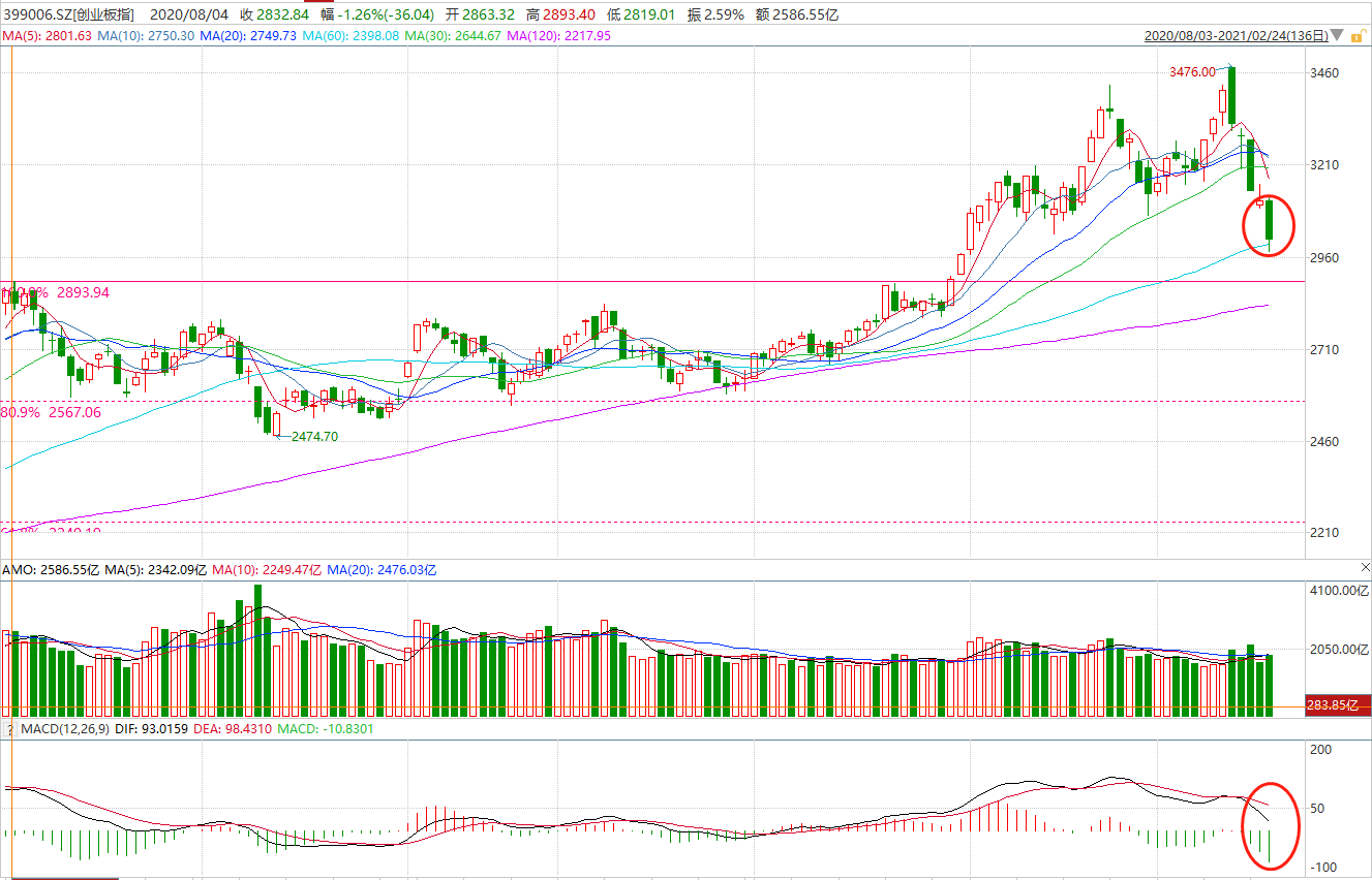 创业板指来看,昨天略微缓冲之后,今日又是一根大阴线下砸,盘中更是直接跌破了3000点整数关口,最终尾盘小幅回升,重新站回3000点上方,日线级别来看,也是刚好完成一笔下跌,但是这一笔下跌的幅度要远大于之前的上涨笔。