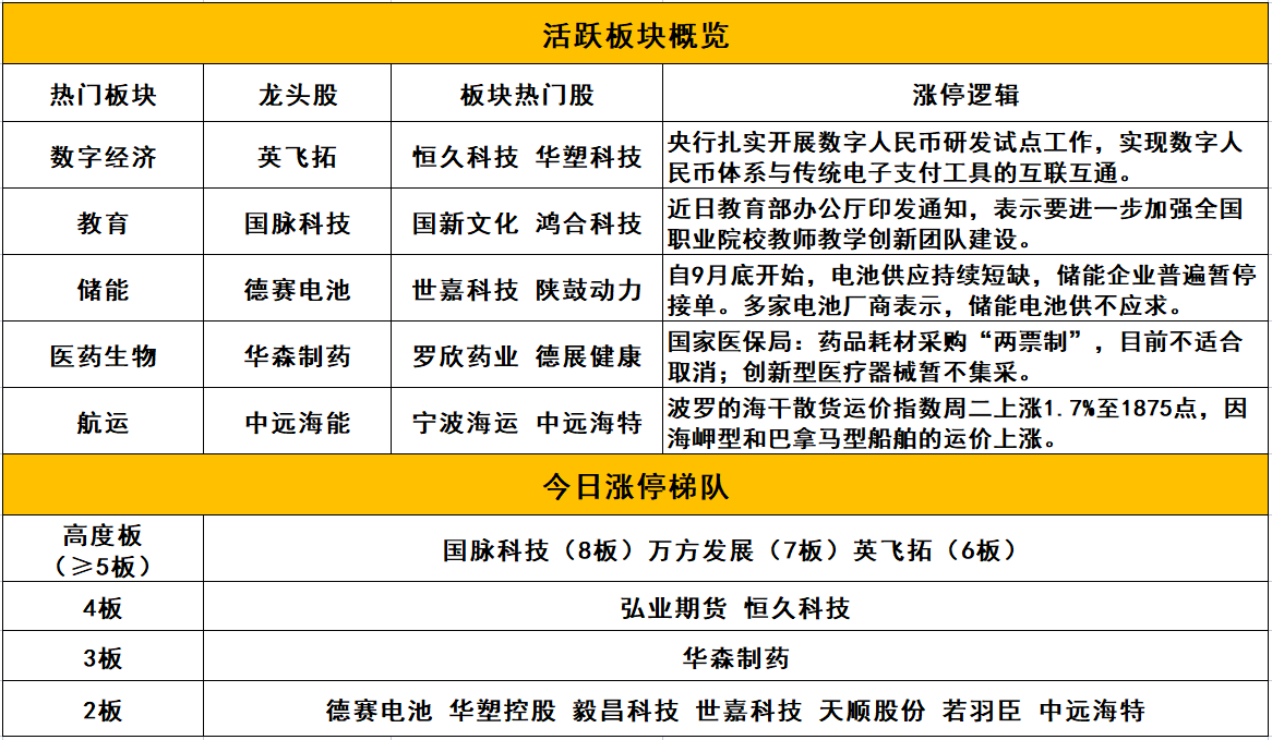 个股方面,教育板块国脉科技8板、国新文化4天3板、鸿合科技3天2板,ST摘帽+医疗信息化的万方发展7板,国产软件概念股英飞拓6板、恒久科技4板。