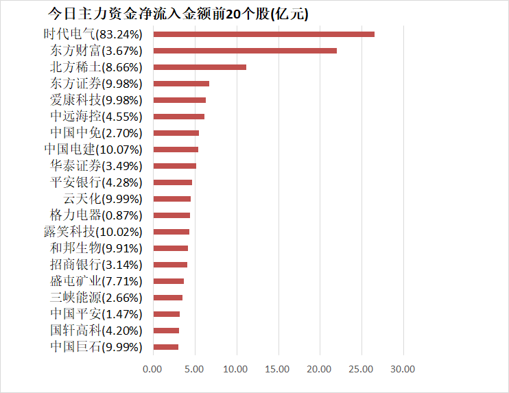 今日沪深两市主力资金开盘净流出59.17亿元,尾盘净流入33亿元,两市全天资金净流入60.43亿元。