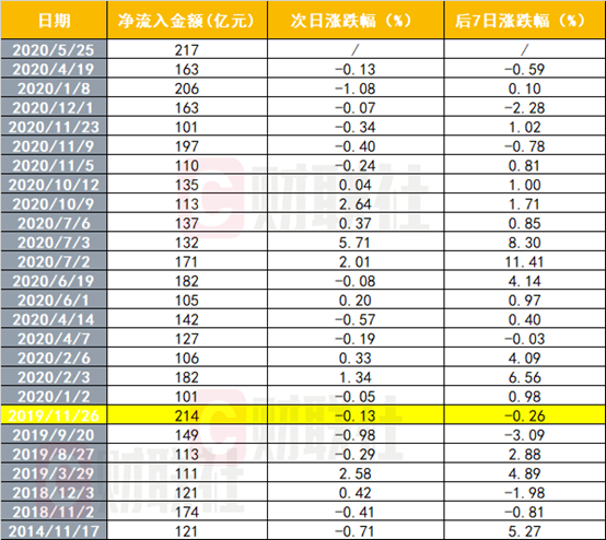 北向资金如此强的扫货力度无疑会显著的提振了市场的做多信心,那么以历史数据为例,北向资金大举扫货后,市场表现如何呢?