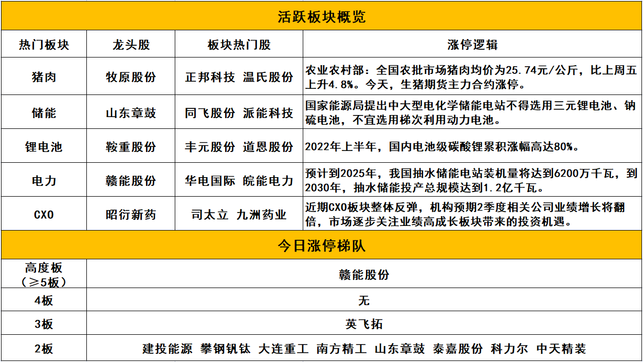储能板块山东章鼓2板、科信技术创业板首板、伊戈尔3天2板,ST摘帽的利源精制2板,业绩超预期的大连重工2板,钒电池概念股攀钢钒钛2板。