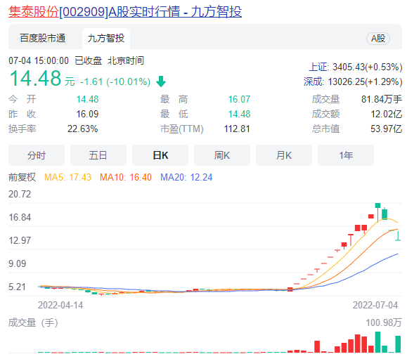 宝馨科技与兴民智通开盘阶段便遭一字跌停,而集泰股份与松芝股份三连跌停。