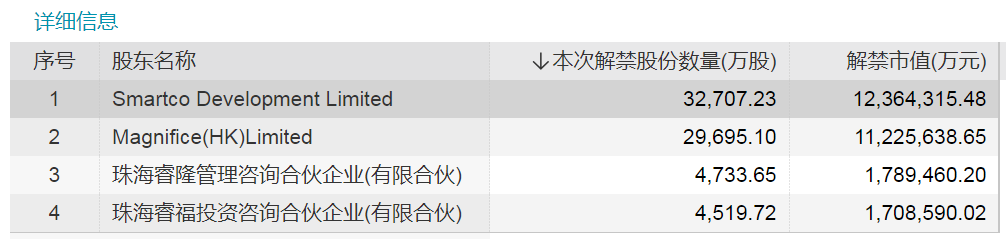 迈瑞医疗解禁详细信息