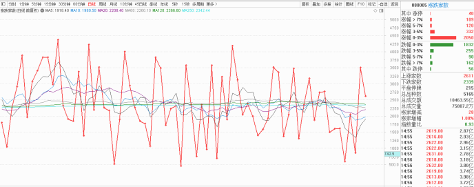 1)以中字头为代表的中大市值股依旧强势,维持指数在筹码集中区反复,但由于成交量缩小,在反复的过程中会酝酿背离下杀,进行新一波风险释放,而在此期间,新能源还会超跌反弹,迎技术性修复;