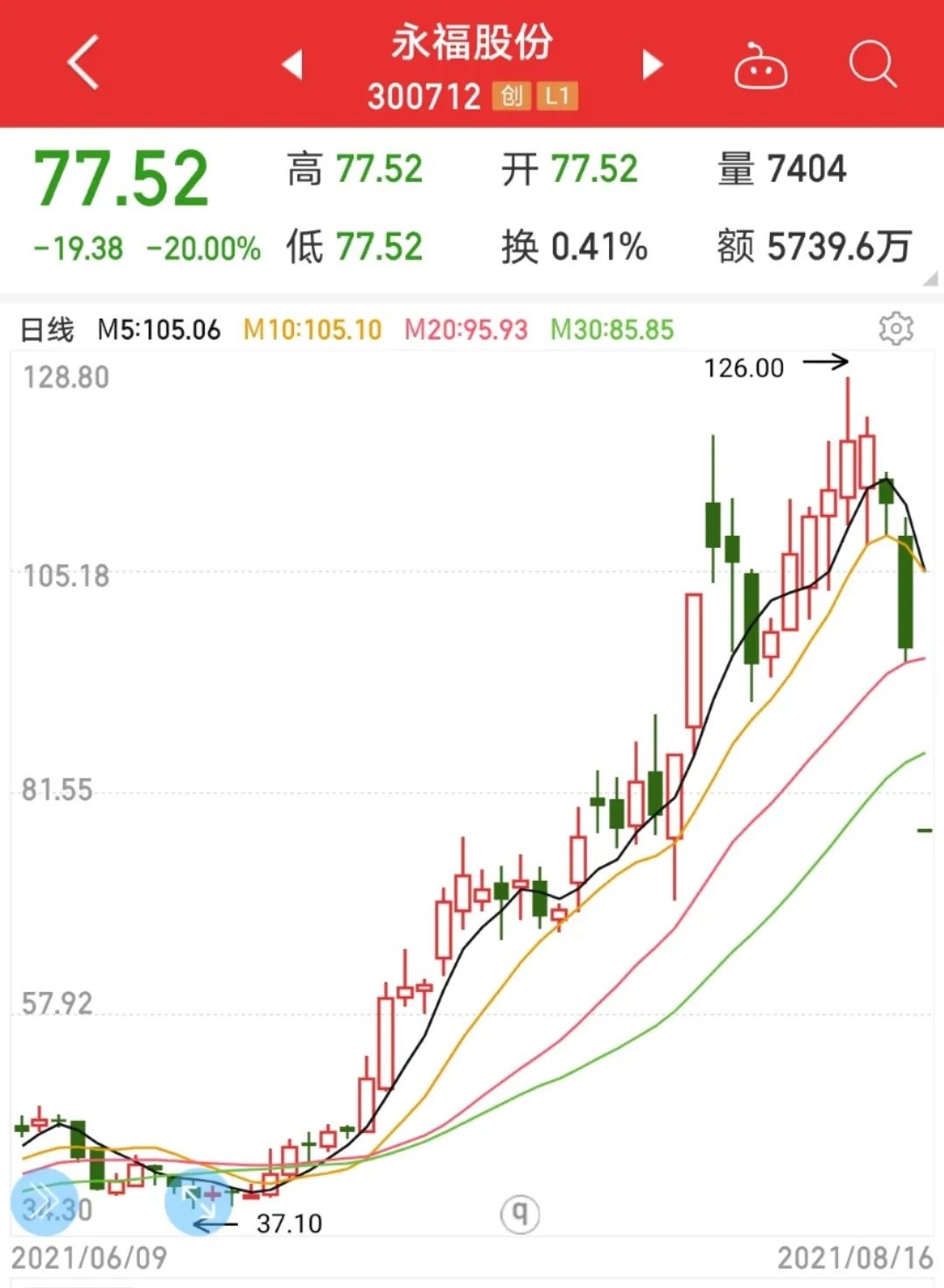 此前,永福股份股价走势表现强劲,8月10日股价创新高,距去年股价低点最高涨幅超12倍,即便从宁德时代入股的2020年四季度至今涨幅也超过200%。不过,永福股份8月10日股价创新高以来,近5个交易日最高跌幅超38%。