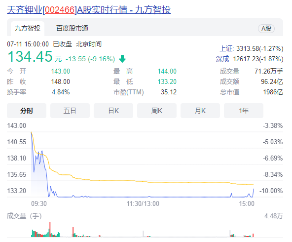 今天市场上最大的焦点莫过于天齐锂业遭徐翔妻子看空后直接跌停。