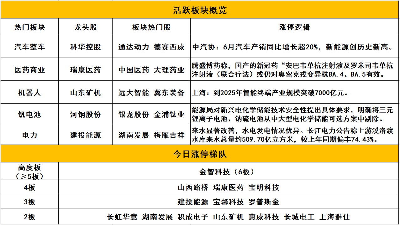 个股方面,虚拟电厂+机器人+储能概念股金智科技6板,拟投建锂电铜箔的宝明科技4板,新冠药概念股瑞康医药4板,基建股山西路桥4板,被举牌的宝馨科技3板.
