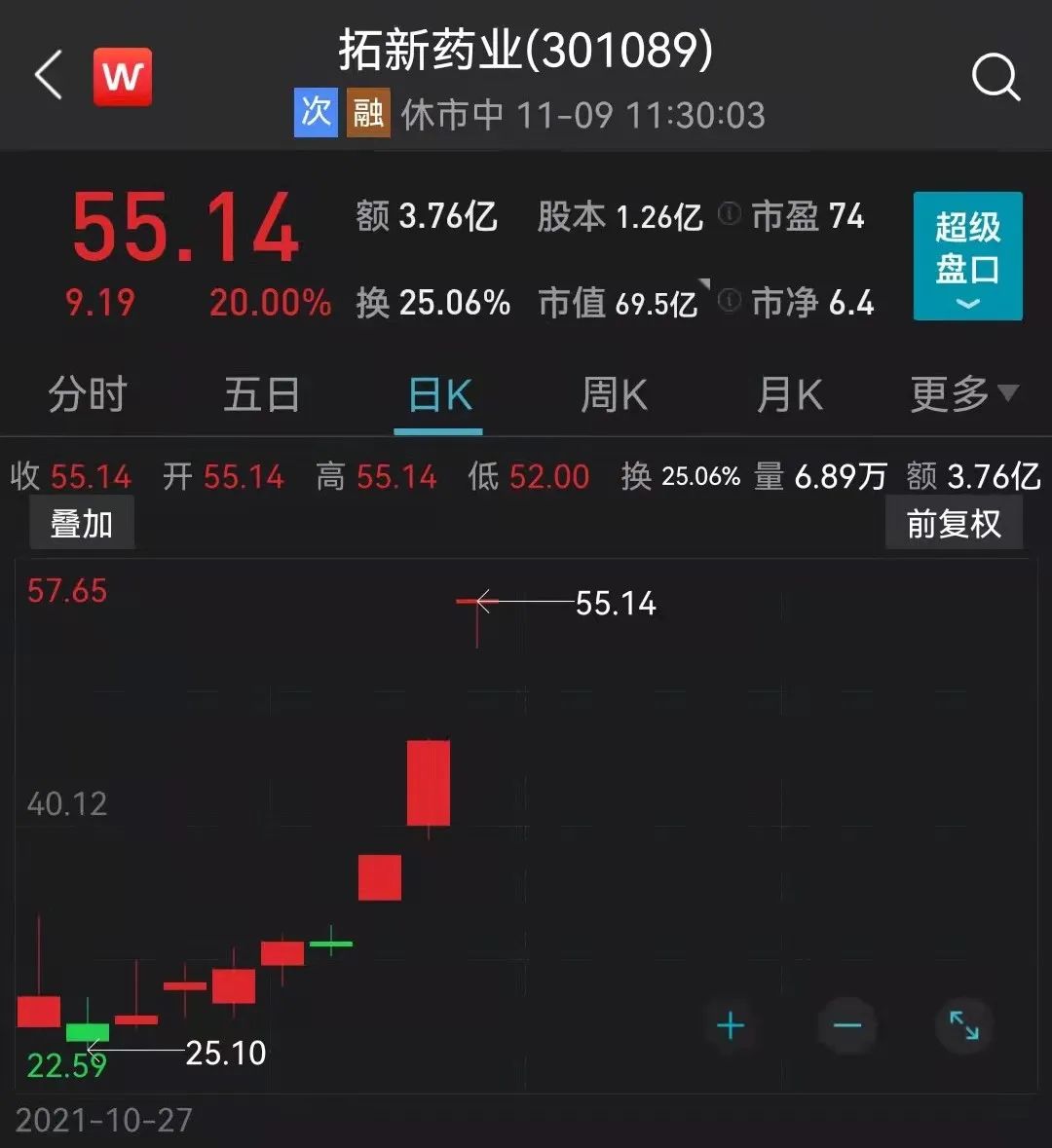 拓新药业10月27日刚刚上市,连续涨停的原因是来自消息面上的刺激。