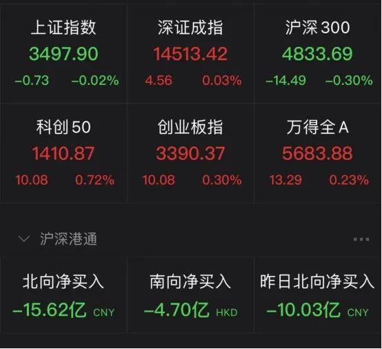 截至午间收盘,上证指数下跌0.02%,深证成指上涨0.03%,创业板指上涨0.30%。两市半日成交额超6200亿元,其中沪市半日成交额为2568.34亿元,深市半日成交额为3685.15亿元。