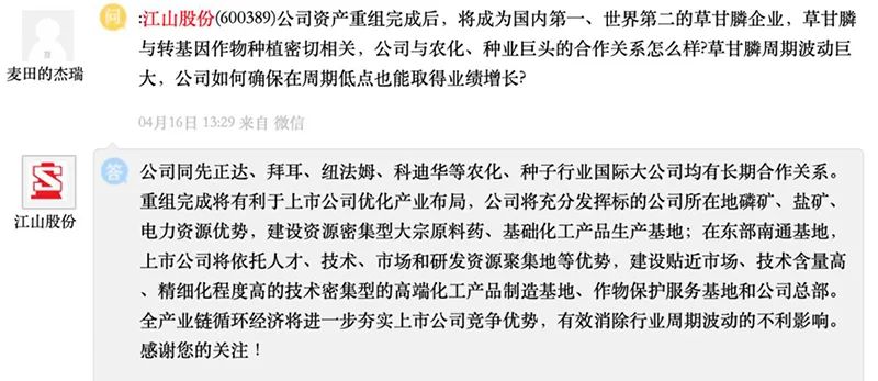 江山股份:拟重组成为国内最大草甘膦生产企业