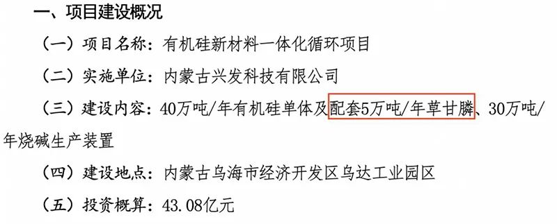 兴发集团:5万吨/年草甘膦装置于明年6月建成投产