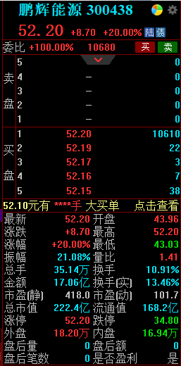 四机构爆买2.16亿!鹏辉能源强势涨停