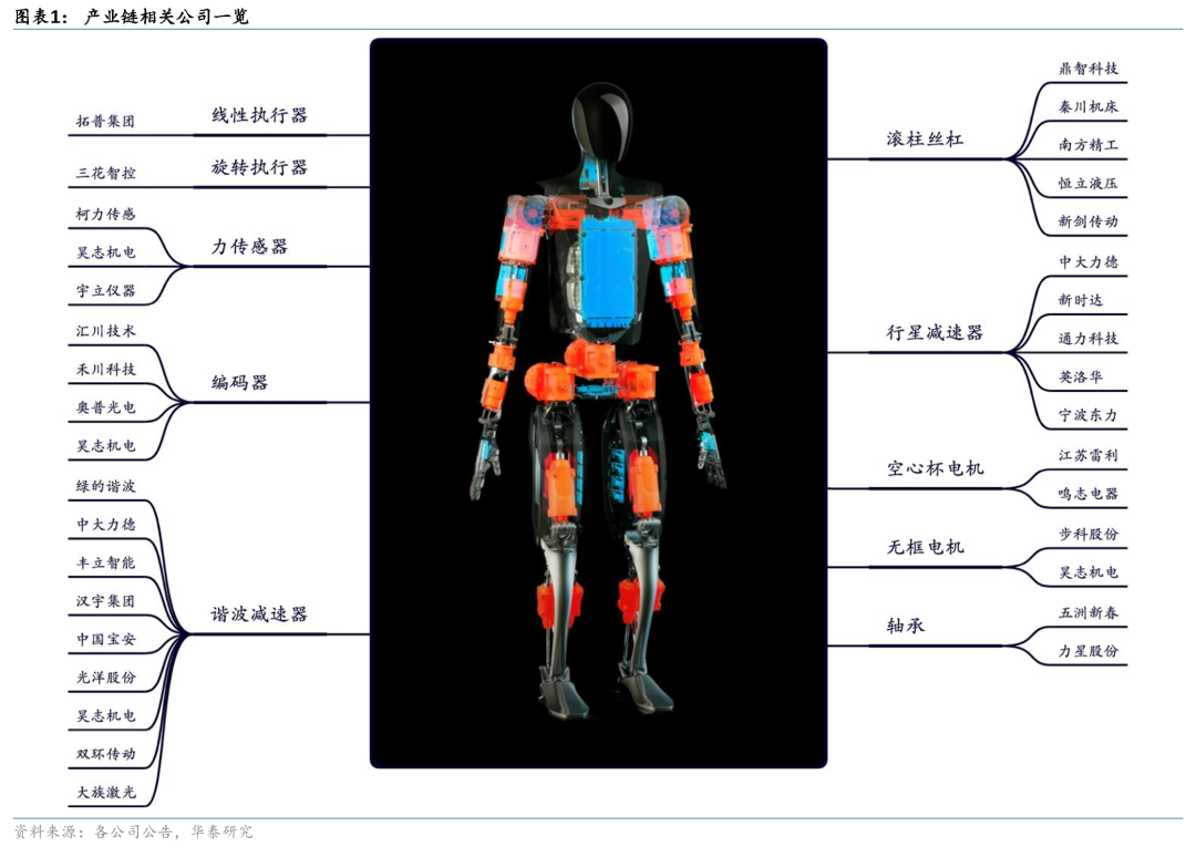 力矩传感器/滚柱丝杠/无框电机/谐波减速器为高价值量环节
