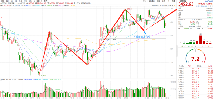 很明显,今日市场并没有给出明显的方向性选择,明天,依旧需要大家注意观察盘面的变化,主要观察成交量的变化即可,这个位置,市场如果想走第1)种走势,那么成交量必须持续放大,最好能回归9000亿以上的量能水平。