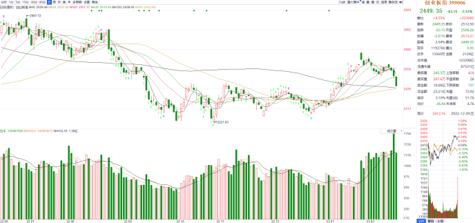 今天,大盘全天震荡调整,创业板指跌超2%,宁德时代跌超5%。板块上,医药股逆势走强,新冠药方向领涨,新华制药、特一药业涨停,上海凯宝涨超10%。消费股早盘活跃,家电、食品板块领涨,飞科电器、利仁科技、麦趣尔涨停。军工股午后异动,天秦装备涨超10%,长城军工涨停。下跌方面,信创概念股集体调整,ChatGPT概念股震荡走弱。总体上两市个股跌多涨少,超2800股下跌,亏钱效应依旧较大。