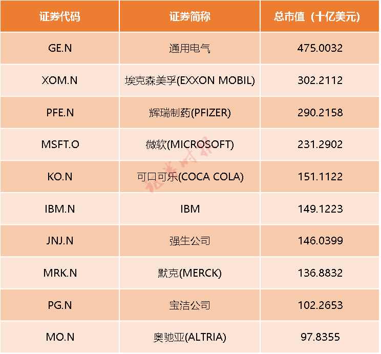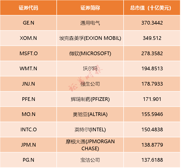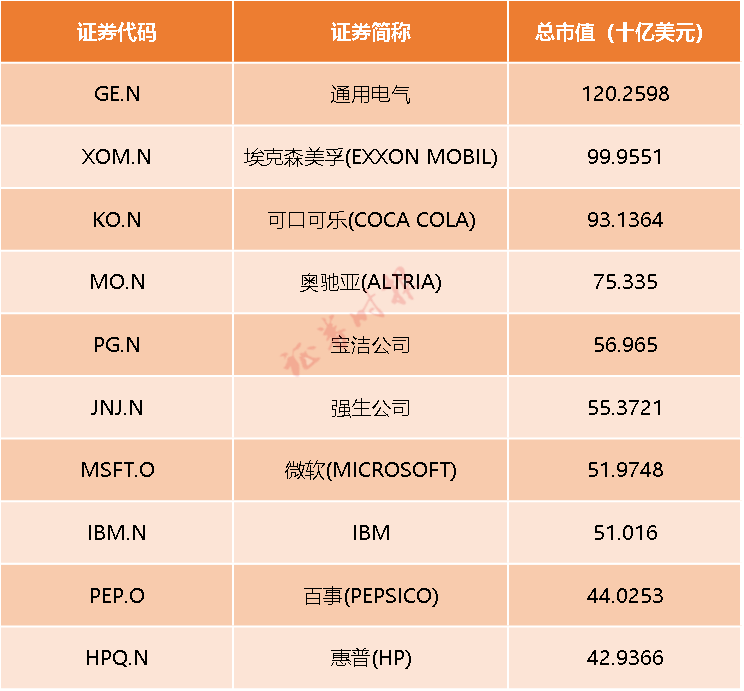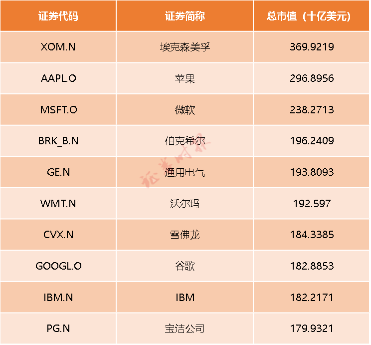 表2:标普500前十大市值上市公司。截止时间:1995年12月30日