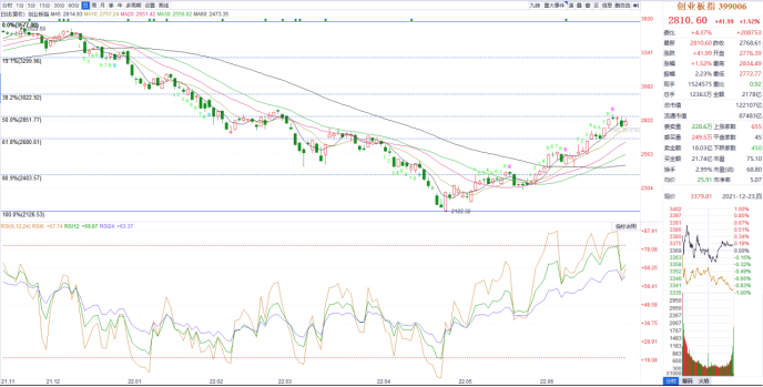对于创业板指,短期需要我们继续关注黄金分割50%分位(2850附近位置)的得失,后市,这个位置如果能放量站稳,那么下一反弹目标可以直接看向3300-3350位置,这点大家注意下即可。