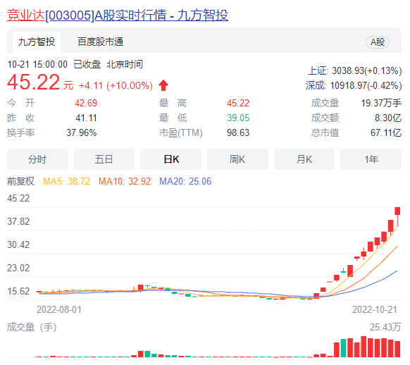 另外,需要注意的目前人气高标的分化愈发明显,其中较好的,像双成药业上演9天8板,而竞业达也再度涨超13天涨超180%,万方发展也完成反包。