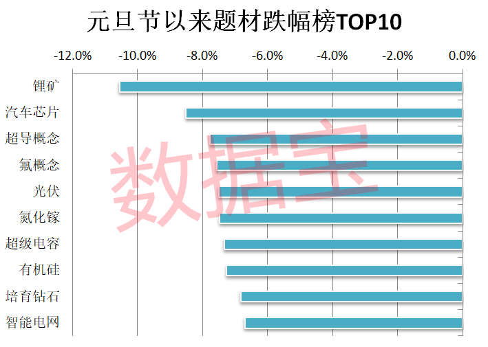 元旦节后,去年最景气赛道之一的新能源车遭遇急刹车,板块“旗手”宁德时代在2022年的五个交易日跌去8.44%。证券时报·数据宝统计显示,节后跌幅居前的题材主要与新能源车相关,锂矿、汽车芯片、换电概念、充电桩、锂电池等指数跌幅均超6%。