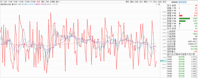 整体来看,今天市场冲高回落,全天很标准的走了个A字走势,个股层面依然是亏钱严重,属于普跌的一天。