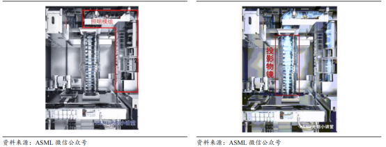 图表1:照明模组的功能是提供投向掩膜版的光(左)先进DUV中投影物镜镜片数量超过15片(右)