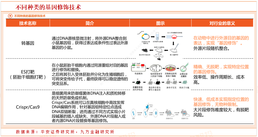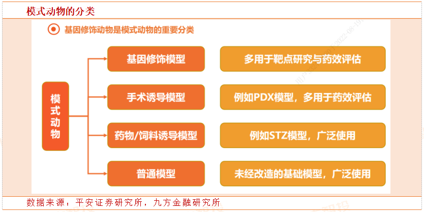 在各类模式动物中,基因修饰动物单价高、用量大,是行业重要的发展方向。