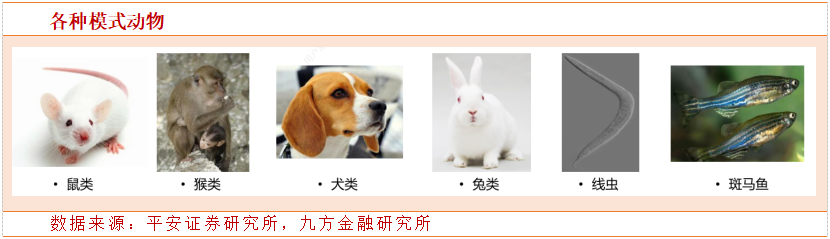 根据研究需求不同,模式动物分为诸多种类,包括:鼠类、猴类、犬类、兔类、线虫、果蝇、斑马鱼等等。