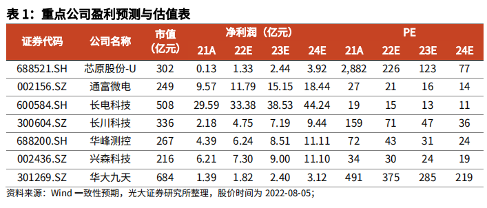 投资角度而言,机构建议主要聚焦封装、设备、IP等环节。对应相关上市公司,主要如下: