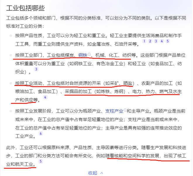 工业排在第一位,按照百度百科的解释,工业范围包括下面几个: