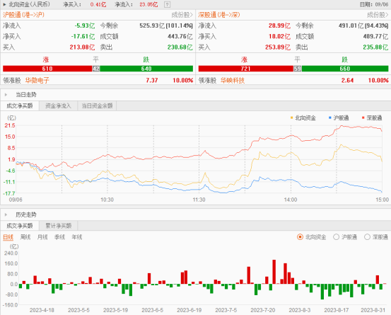 美股方面,美股周三收跌,科技股跌幅领先。美国国债收益率攀升。投资者担心美联储的加息周期可能尚未结束。一位联储官员称仍有可能需要进一步加息。美联储褐皮书称经济活动和就业市场增长放缓。截至收盘,纳斯达克指数跌1.06%,标普500指数跌0.7%,道琼斯指数跌0.57%。热门中概股涨跌不一,纳斯达克中国金龙指数收跌0.53%。
