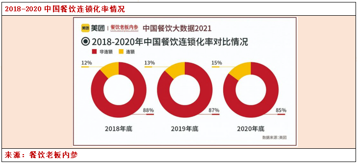随着过去年城镇化进程以及工作时间延长,居民基于社交和便捷方面的考虑,外出就餐逐渐替代家庭做饭,2021年,全国餐饮收入46895亿元,与上年相比由负转为正增长18.6%。餐饮行业的持续增长对调味品收入的增长十分重要。此外,随着我国餐饮企业连锁化的趋势,企业对调味品质量的关注也会越来越高,从前无包装、无厂商的调味品将逐步被淘汰。