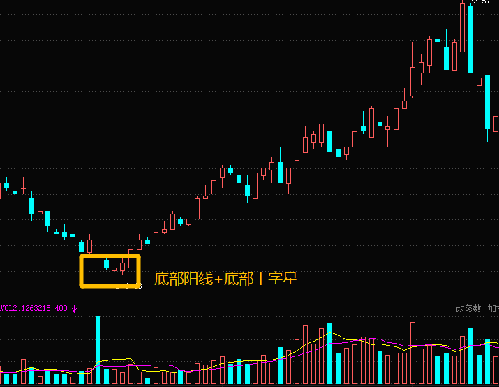 要求具备一定的技术研判功底,尤其是对K线组合的研判,要求较高,以底部十字星和底部阳线为例。