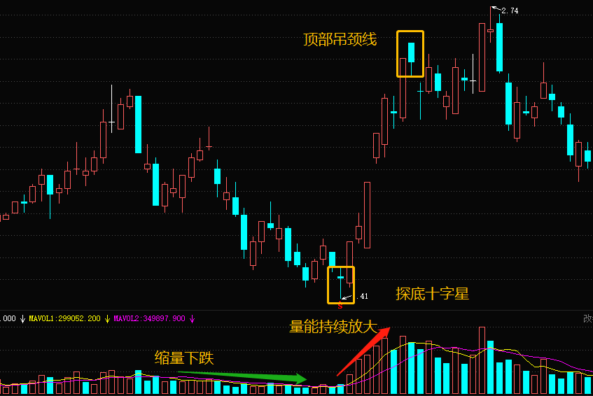 2、含义:通常情况下,表明主力资金没有出局的意愿或根本无法出局,一旦稍有利好,就会马上放量反攻;其中放量有三层含义:1是低位抄底盘进场,2是高位套牢盘补仓,3是高位套牢盘卖出。