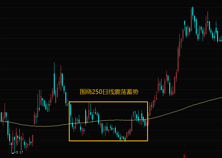 (2)股价回调至长期120日,250日均线附近的弱势反弹,通常情况下表明,虽然没有较多的资金在其中运作,但根据市场自身的运作规律,有一个自我修复的过程,因此反弹的力度较弱,空间较小。在长期趋势线止跌的时间越长,发生反弹的几率就越大。
