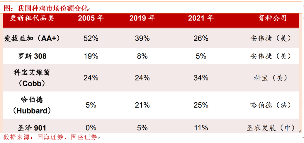 分品种看,安伟捷仍是第一生产力,短期国内产能无法弥足海外引种缺口。一方面,今年圣农自研种源圣泽901开始对外销售,种鸡市占率有望逐步扩大。