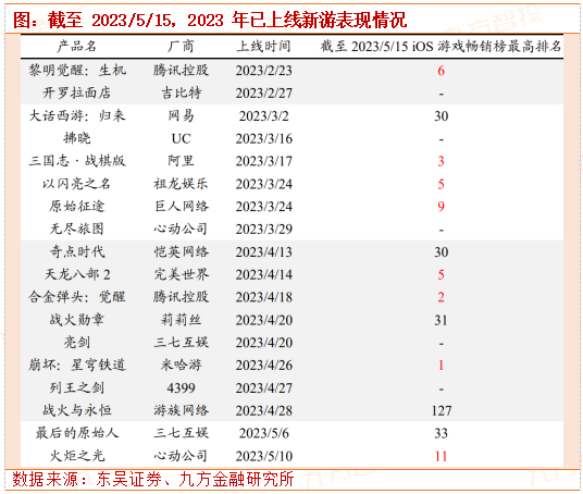 (三) 各大厂商产品管线充沛,新游周期将于 2023Q2-3 开启