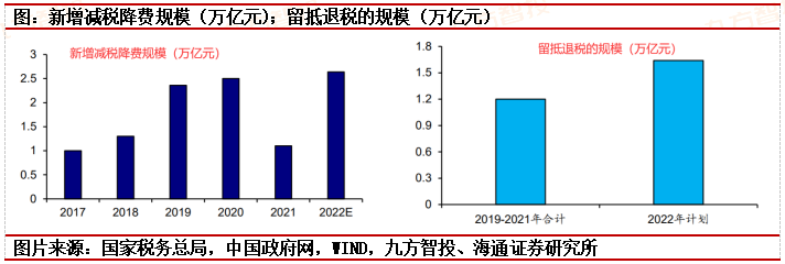 2016年以来,《政府工作报告》会发布当年减税降费规模逐年攀升。2022年我国计划退税减税约2.5万亿元,规模再创历史新高,其中通过留抵退税为市场主体减负1.5万亿元,并且退税资金全部直达企业,成为减轻企业税负的重要举措。2016年至2021年,全国新增减税降费总量超过8.6万亿元。