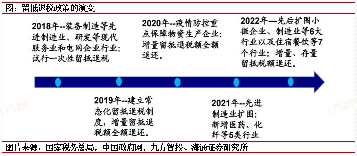即便如此,我国留抵退税政策仍得到了深入推进:从个别行业试行一次性留抵退税,到全行业按比例退还增量留抵,再到先进制造业按月全额退还增量留抵,退税制度持续改进。