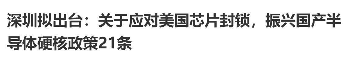 不过,对于芯片的利好政策倒是有一个《深圳拟出台:关于应对美国芯片封锁,振兴国产半导体硬核政策21条》。
