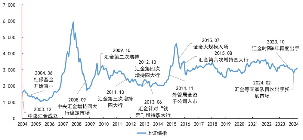 不过,上半年仍有一类资金在波橘云诡的A股市场中取得了亮眼的收益,那便是被大家所熟知的“国家队”。国家队源于2000年成立的全国社保基金,2013年后,“国家队”规模扩张,目前主要包括汇金、证金、证金资管、外管局、社保基金、国家集成电路产业基金、国新等。今年上半年“国家队”之所以能取得较好的投资收益,我们认为与两方面因素有关: