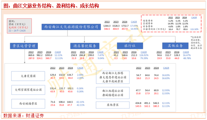 在今年疫情爆发前,曲江文旅21年的业绩其实已经实现了高增长,疫情反复背景下,公司业绩仍恢复超疫前水平,2021 年,公司实现营收 13.65 亿元,同比增长 26.80%;实现归母净利润 0.07 亿元,扭亏为盈,同比增长 0.79 亿元。景区运营、酒店餐饮、旅行社、旅游商品销售、园林绿化、体育业务分别实现营收 9.87、2.53、0.43、 0.16、0.55、0.09 亿元。