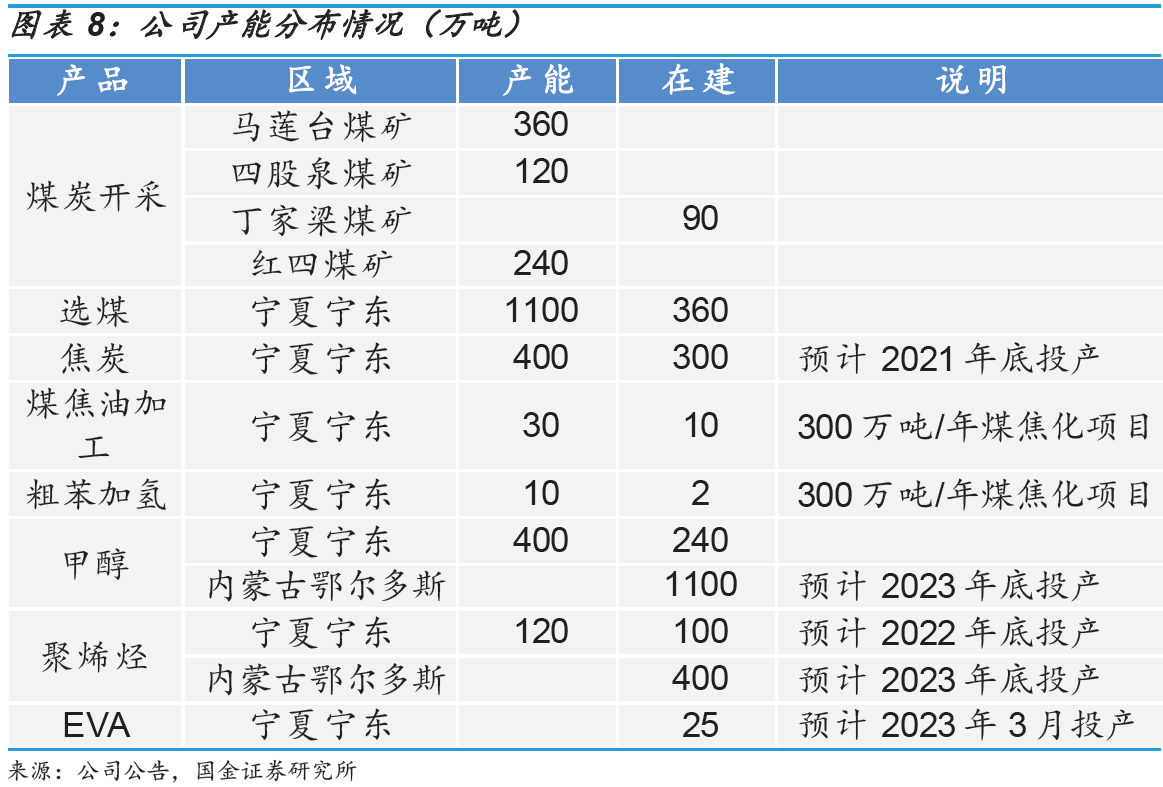 把握机遇,扩充产能,建立一体化大型煤化工企业。经过10多年的布局,公司的生产能力持续提升,通过焦化两期项目,烯烃两期项目逐步形成了720万吨煤炭开采、400万吨焦碳、400万吨甲醇、120万吨聚烯烃、87万吨精细化工产能,已经成为国内规模领先的煤化工企业。