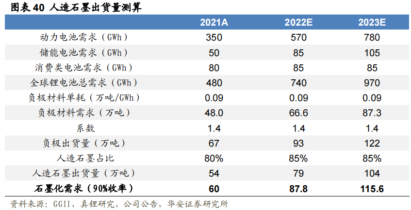 由于石墨化产能多集中在内蒙四川等低电价地区,而能耗双控政策导致开工率短时间内难以提升,另一方面,为应对下游高增的需求,各企业加快石墨化产能建设,但能评审批难度加大影响新项目的建设和投产进度,因此机构认为未来两年石墨化产能仍然存在硬性缺口可能性。