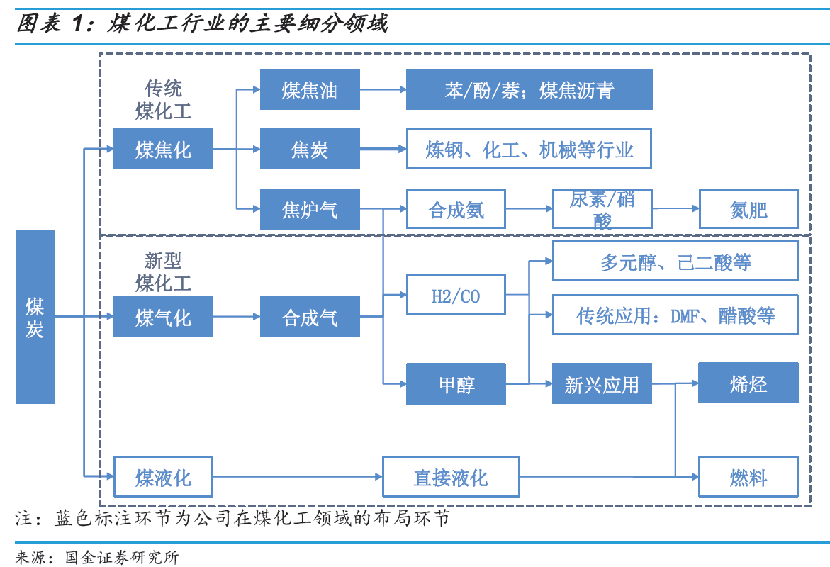 ①煤化工双线布局公司专业从事煤化工领域,传统煤化工和新型煤化工双线布局。经过多年的发展,我国煤化工产业链布局逐步完善,已经从原有的传统煤化工领域逐步向新型煤化工领域进行延伸,伴随着我国的煤化工行业发展,公司也同步进行了业务的扩展,现阶段公司已经形成了包含传统煤化工和新型煤化工的双线业务格局,