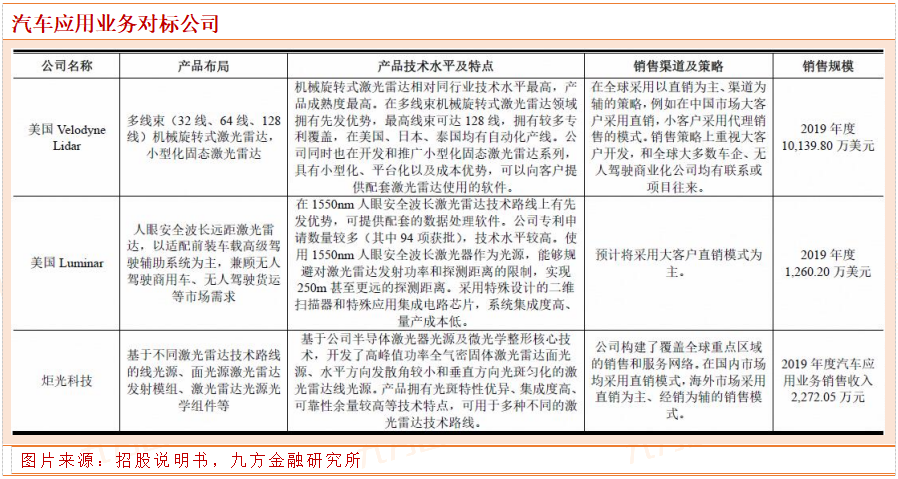 公司已与北美、欧洲、亚洲多家知名企业达成合作意向或建立合作项目,包括美国纳斯达克激光雷达上市公司VelodyneLiDAR、Luminar、福特旗下知名无人驾驶公司ArgoAI等,其中激光雷达线光源产品已与多家客户建立新产品开发项目。
