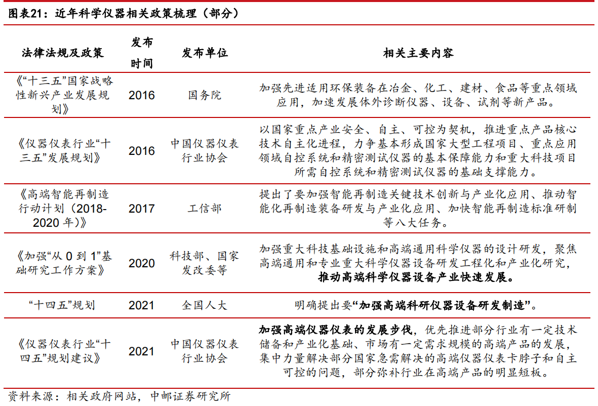 因此,政策端中央政府也是高度重视,先后出台多项政策支持国产科学仪器发展。2022年9月,国务院决定对部分领域设备更新改造贷款阶段性财政贴息和加大社会服务业信贷支持,政策面向高校、职业院校、医院等九大领域的设备购置和更新改造,总规模预估为1.7万亿。