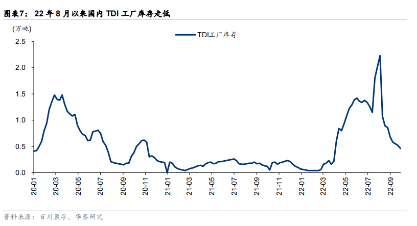 TDI下游主要为软体家居,秋冬季消费需求有望一定程度修复。从需求修复、低月度产量、库存状况看,TDI价格后续仍有上涨预期。