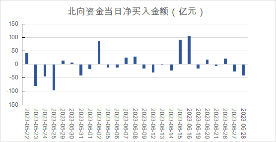6月28日,北向资金继续净流出,且规模较昨日扩大,整日净流出达40.72亿元。其中,沪股通整日净流出25.83亿元,深股通整日净流出14.89亿元。