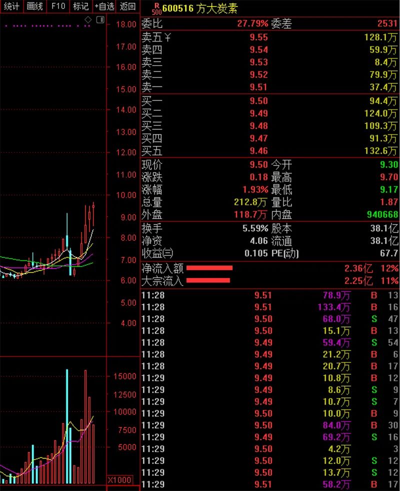 今日上午,方大炭素继续上攻。