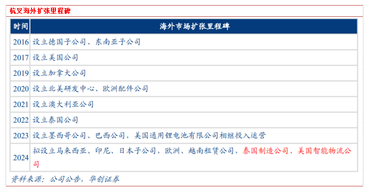杭叉集团2023年以来增设墨西哥、巴西、马来西亚、印尼、日本销售子公司,欧洲、越南租赁公司,泰国制造公司,美国智能物流公司等,研发、制造、销售全面出海。具备较强的贸易风险抵抗能力和敏锐的市场洞察力,海外收入规模的提升,有望助力公司盈利能力持续向上。